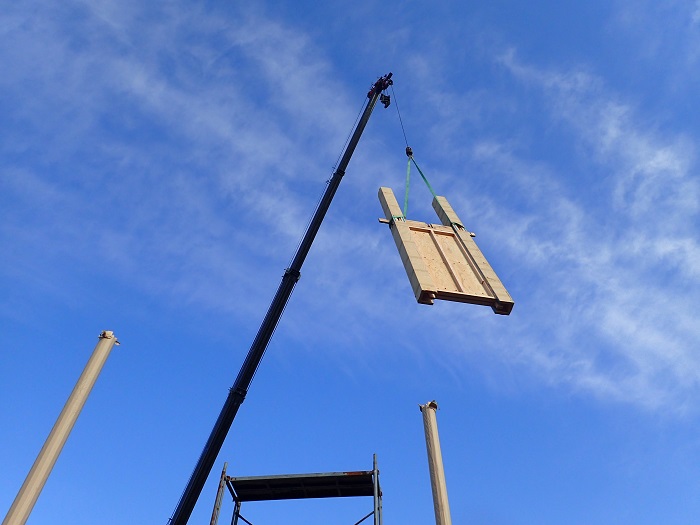 そして、16m級米松原木の調達・製材から約2年が経過し、ようやくこの日を迎える事が出来ました。